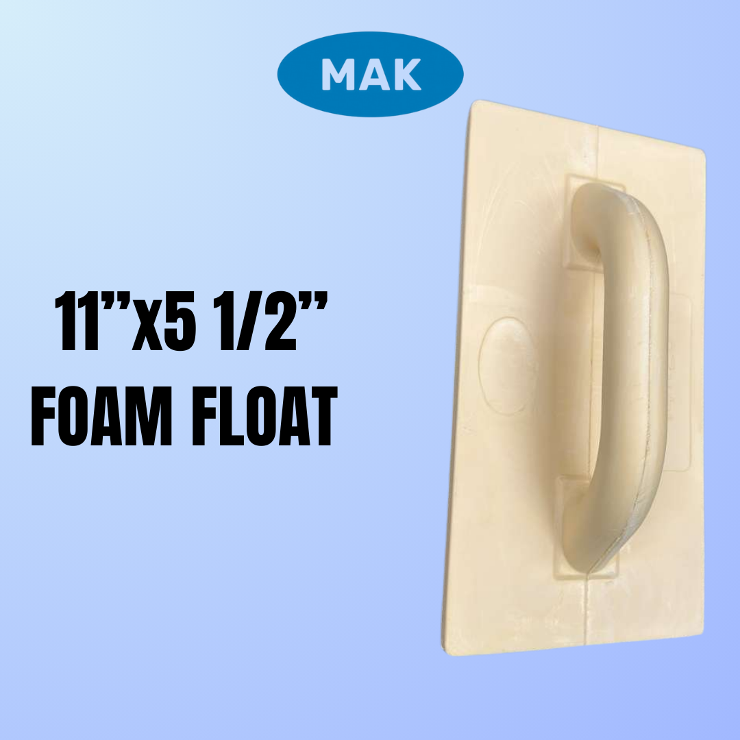 This 11″ x 5.5″ Polyurethane Foam Float by MAK is a professional-grade masonry tool designed for leveling and smoothing large surfaces of concrete, stucco, and plaster. Its lightweight construction and specialized texture make it an essential choice for achieving a uniform finish on both interior and exterior walls.